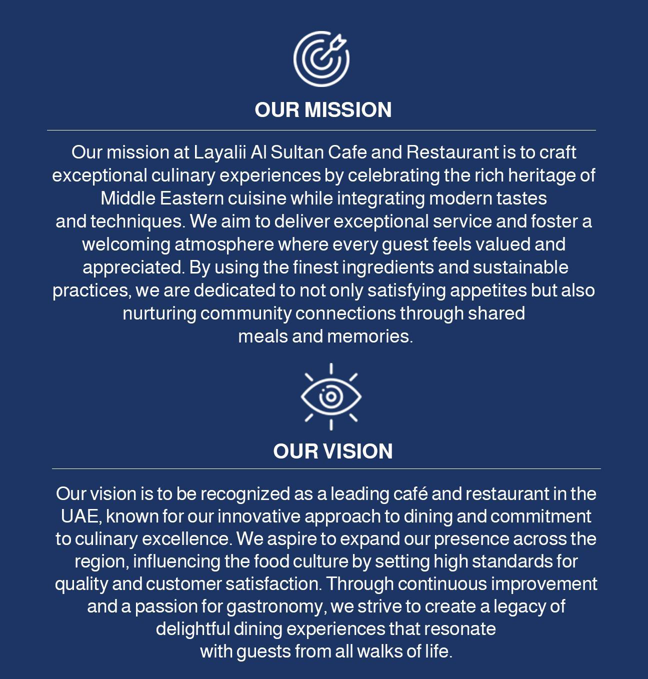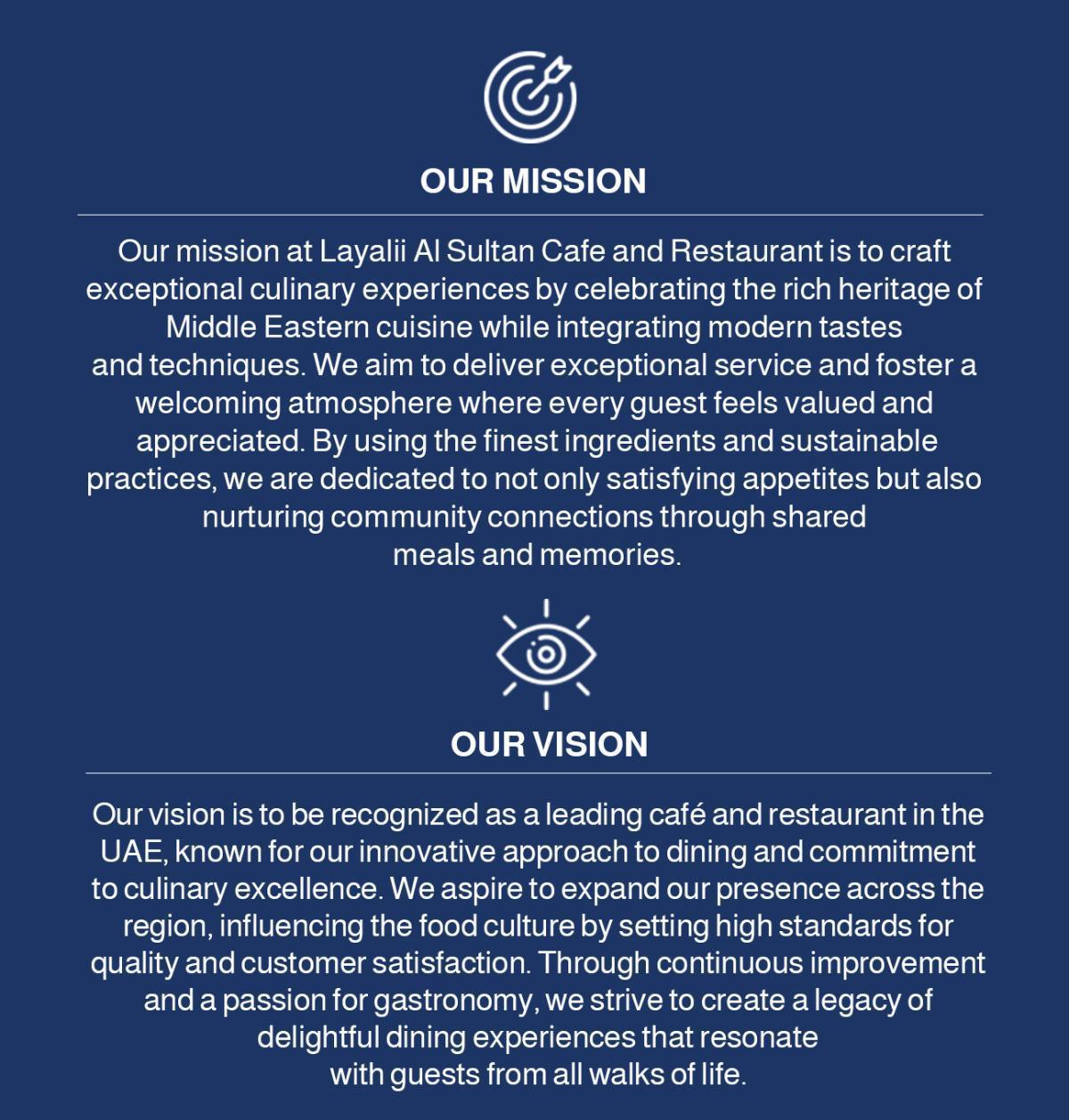 Layali Al Sultan Restaurant and Cafe is a premier dining destination located in the vibrant landscape of the United Arab Emirates. Offering an exquisite blend of traditional and contemporary culinary delights, we invite our guests to indulge in a rich tapestry of flavors and experiences. Our café and restaurant serve as a welcoming haven for food enthusiasts, emphasizing the warmth of authentic hospitality and the artistry of fine dining. With a focus on quality and innovation, Layalii Al Sultan is committed to creating unforgettable moments for all who pass through our doors.